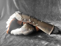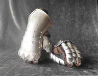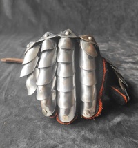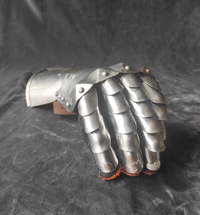 Excellent for sword fencing and buhurts. The leather glove is securely riveted to the metal.