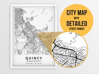 Printable Map of Quincy, Massachusetts, United States with Street Names - Instant Download \ City Map \ Wall Art