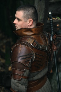 In addition, the chest piece is lined with thick linen fabric. Thats make it more comfortable to wear. The bracers and shoulder armor are lined with leather.