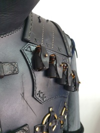 Chest armor has hidden binding for shoulder peace. So you could attach yours or order custom one from me.