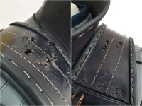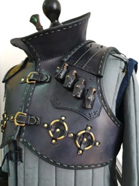 The chest piece is lined with thick linen fabric. Thats make it more comfortable to wear. Bracers are lined with leather.