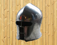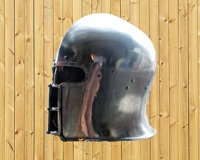 A replica of the historical Barbut helmet of medieval Europe of the 13th and 14th centuries.