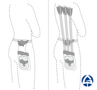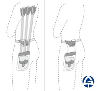 Initially, the quiver is intended for right-handed archers (worn on the belt on the left).